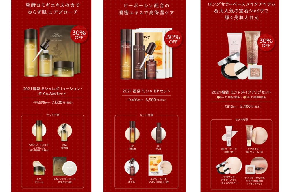 2021年のミシャ(MISSAHA)福袋は3つのタイプが販売されていました。